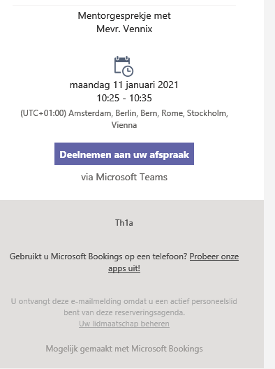 De ideale app voor het inplannen van mentorgesprekjes of afspraken met ouders. Je kunt deze tool ook gebruiken voor het inplannen van mondelingen. De vergaderlink verschijnt direct bij de afspraak.