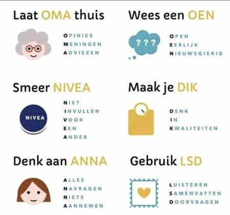Op school zijn wij bezig met een vaardighedenlijn en we hebben training gekregen over gespreksvaardigheden. Hieronder zie je een visuele samenvatting. We hebben dit in groepjes geoefend en we hebben elkaar feedback gegeven. Interessant om te doen.