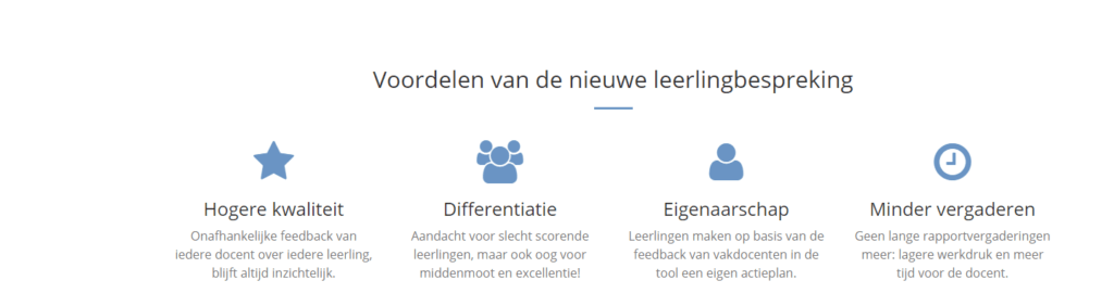 Op de site van leerlingbespreking kun je een leerlingbespreking organiseren in 3 stappen. Er zijn koppelingen met Magister, Somtoday, en Entree.