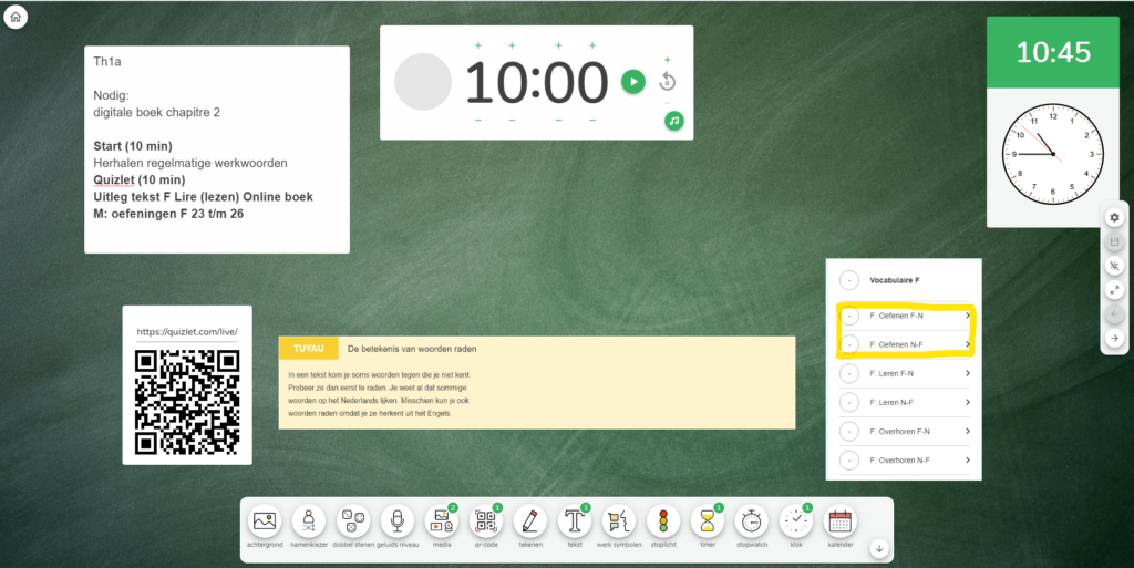Zelf maak ik veel gebruik van de tool www.classroomscreen.com
