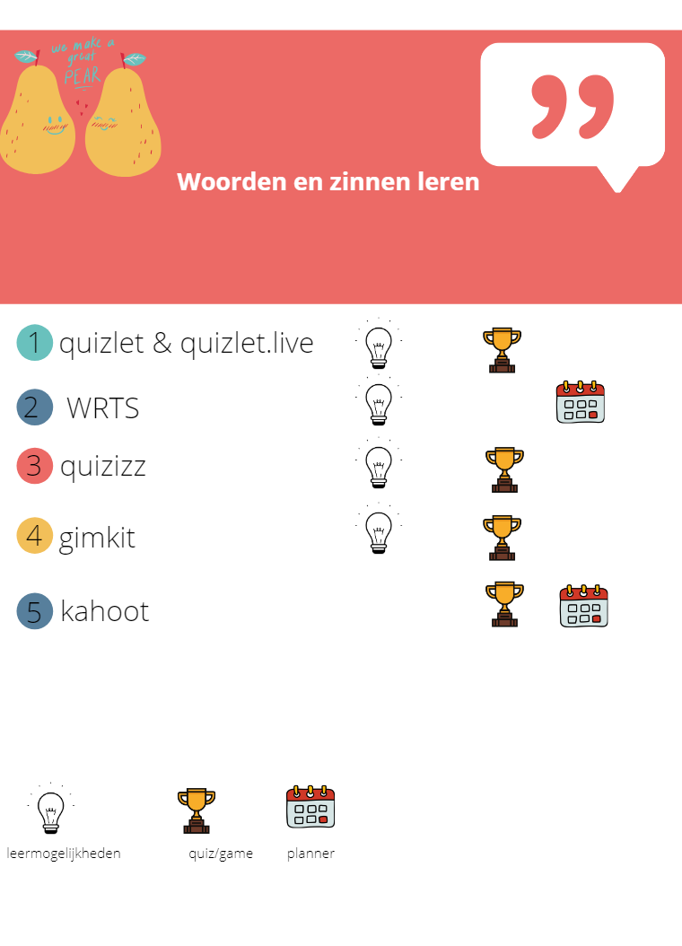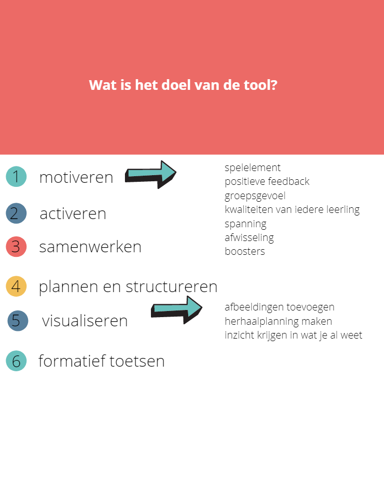 Op het gebied van ICT zijn er veel programma’s die het onthouden en leren vergemakkelijken. Het gaat dan met name om het in kleinere eenheden aanleren van stof, visualiseren en herhalen. Op deze pagina vind je de omschrijving van de tools en hoe je ze kunt inzetten tijdens de les. Niet alle tools zijn gratis.