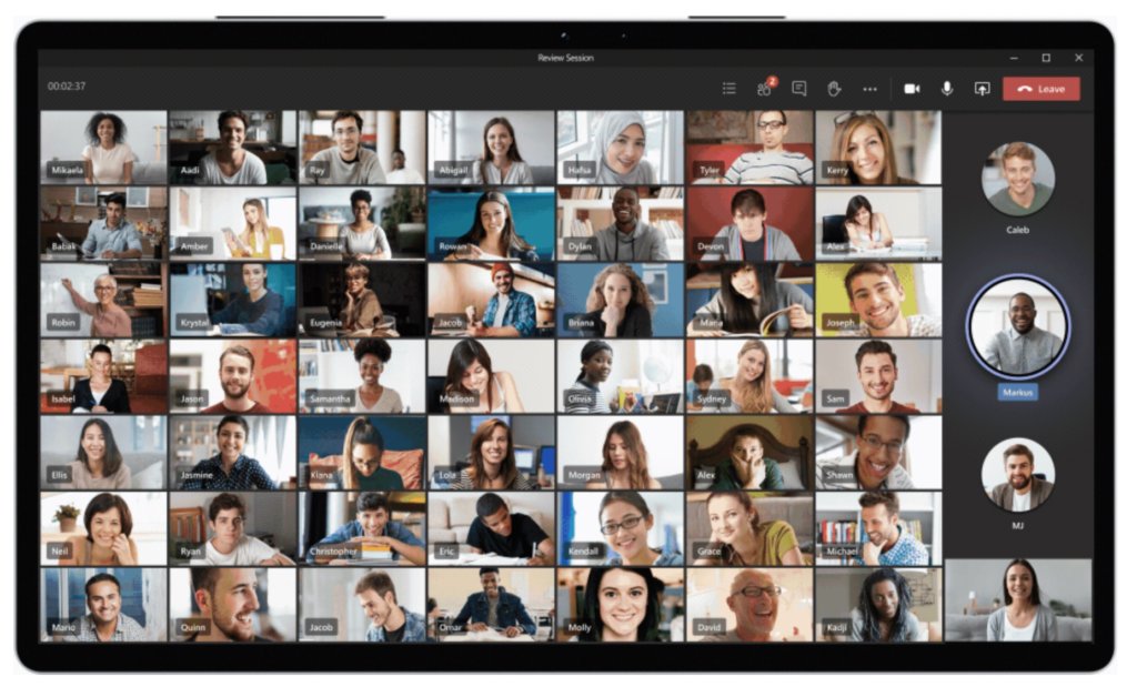 Klik op de vergaderbalk op de (…) en je kunt kiezen voor verschillende weergave. Er is onderzoek gedaan dat de weergave waarbij je de leerlingen in de together modus ziet het meest rustgevend is voor de presentator. Verder kun je bij dezelfde knop de opties vinden hoeveel deelnemers je in beeld wilt. Lukt dit niet dan kan dit te maken hebben met de versie van Teams waar je in werkt en dan is het een kwestie van updaten. Het kan ook komen doordat niet genoeg deelnemers de camera aan hebben staan.